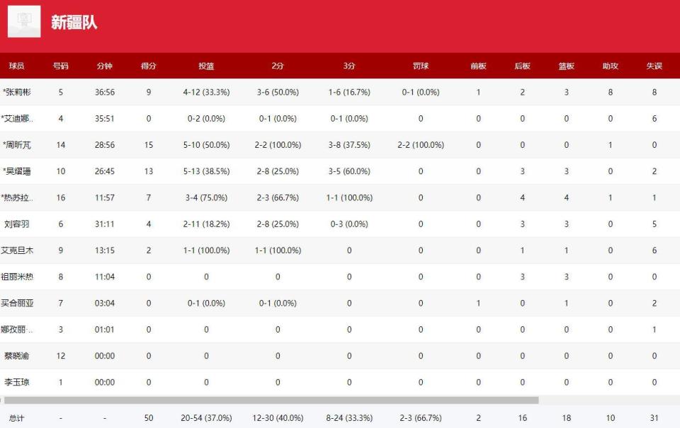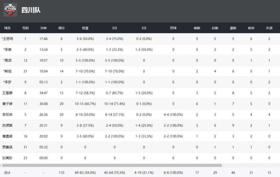 末节比赛失去悬念,双方均以练兵为主。四川队依旧保持高强度防守,最终以60分优势获胜。技术统计显示,四川队五人得分上双,全队两分命中率高达69.8%,唐子婷14投10中砍下20分,李双菲同样贡献20分。新疆队全场出现31次失误,进攻篮板以2比17大幅落后,各项数据全面处于下风。这场胜利充分展现了四川女篮在本次资格赛中的统治力,球队将继续向更高目标迈进。
